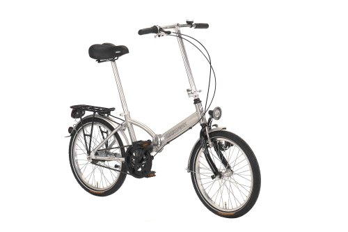 Klein und superpraktisch: Dieses Klappfahrrad passt in jeden Kofferraum. Ob im Urlaub, bei Wochenendausflügen oder für den Weg zum Büro steht Ihnen das kompakte, 14 kg leichte, silberfarbene Alu-Faltrad stets zu Diensten. Nehmen Sie sich die Freiheit. Das grundsolide gefertigte Aluminium-Faltrad lässt sich mit ein paar einfachen Griffen in Handgepäckgröße verwandeln und dann bequem verstauen. Trotzdem müssen Sie auf den Fahrkomfort eines 'großen' Rads nicht verzichten. Mit 3-Gangschaltung und Rüc ............<< Anmerk: Der Text musste aus Platzgründen leider gekürzt werden >>............. nwerfer mit Reflektor, Gepäckträgerrücklicht mit Standlichtautomatik, Klingel, Pedal-Reflektoren und Reflexstreifen-Reifen ausgestattet. Ein praktischer Alu-V-Streben-Gepäckträger und ein verstellbarer Seitenständer zum Abstellen machen das Fahrrad besonders komfortabel. Gönnen Sie sich dieses qualitativ hochwertige Klappfahrrad, an dem Sie lange Freude haben werden und mit dem Sie immer und überall mobil sind. Aufstellmaß: H 112 x B 58 x T 148 cm, Klappmaß: H 66 x B 38 x T 76 cm, Rahmenhöhe: 33 cm, bis max. 120 kg belastbar.